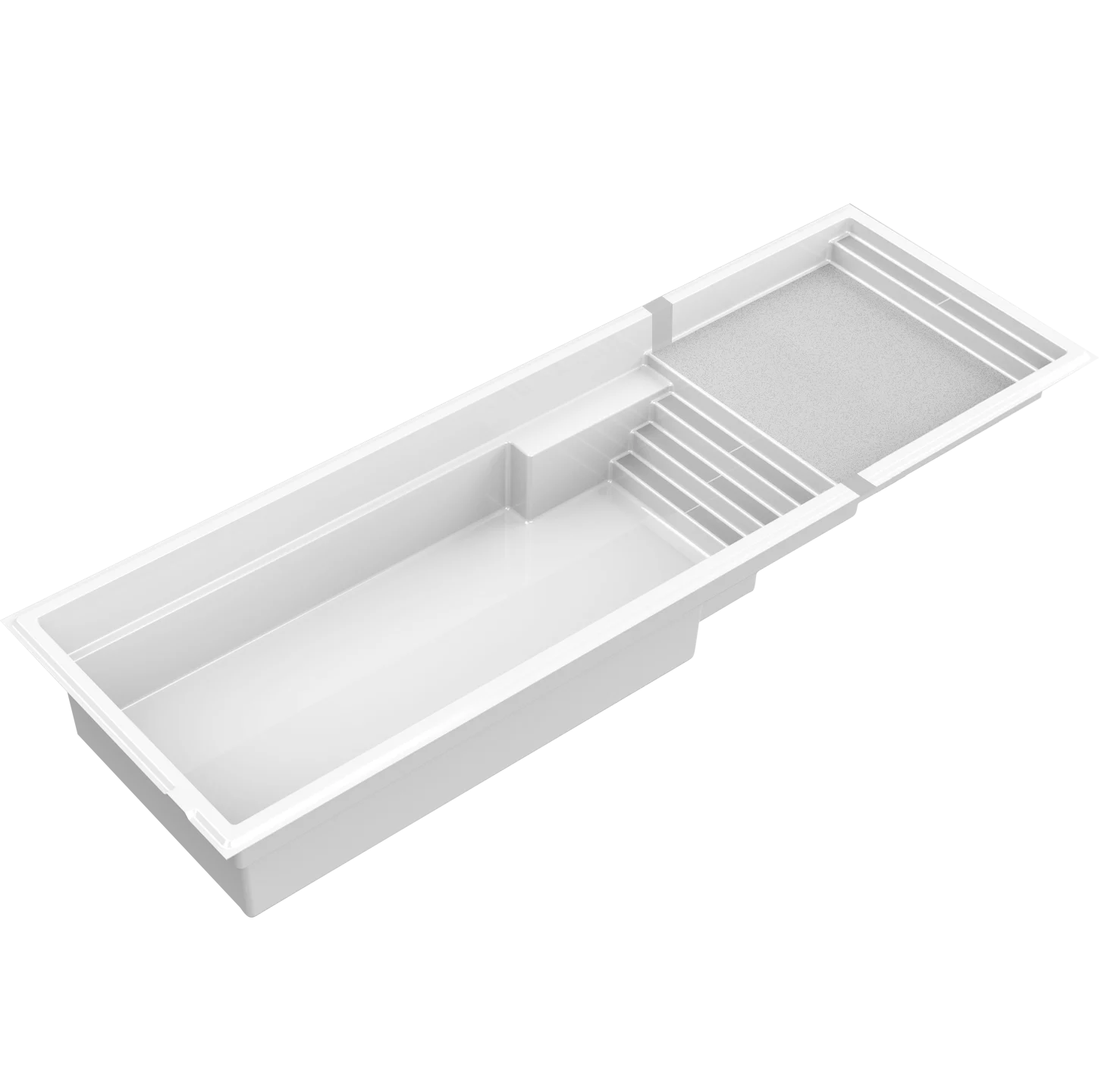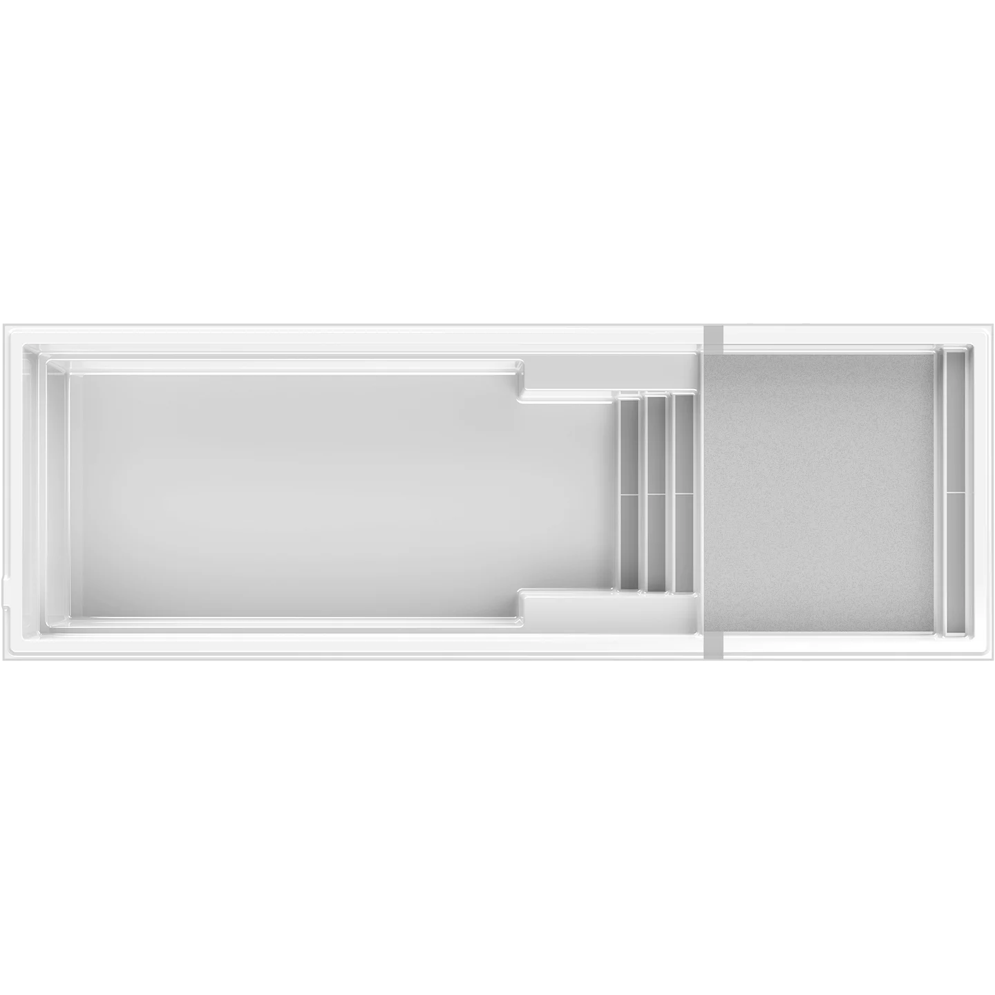 Discover the 12×37 fiberglass in-ground pool, a 12×28 pool with a 9-foot terrace area, for a total of 12×37. This unique design offers you a vast relaxation area in a shallow zone, ideal for relaxing or allowing young children to play in complete safety.